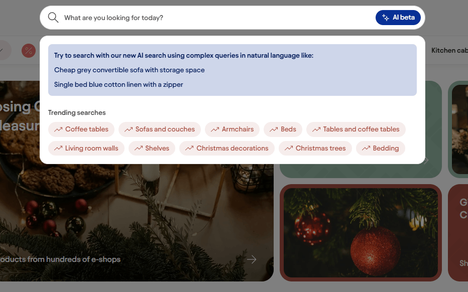 Zabudnite na preklikávanie kategórií a filtrov. S AI vyhľadávaním stačí opísať, čo hľadáte, akoby ste to hovorili predavačovi – napríklad „Sivá rozkladacia sedačka s úložným priestorom do 800 € skladom“ – a my vám okamžite ukážeme presné výsledky. Jednoduchšie to už byť nemôže.