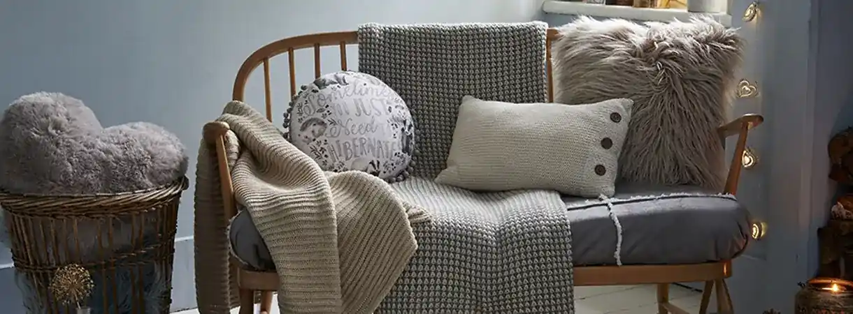 Mäkké vankúše s pleteným poťahom nabádajú k usadnutiu na gauč samy o sebe. V chladnejších mesiacoch oceníte na sedačke aj veľkú pletenú deku na sedačke, ktorá vám bude robiť spoločnosť pri čítaní či sledovaní filmov. Pokojne navrstvite niekoľko rôzne veľkých diek na seba, vyzerá to fantasticky. Chlpaté koberčeky s vysokým vlasom potom skvelo doplnia jednoduchú drevenú podlahu rovnako dobre, ako umelé aj pravé kožušiny.