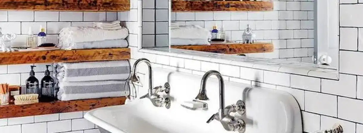 - Drevo – dodá kúpeľni na útulnosti, nevyzerá tak studeno. Vhodné sú také drevené materiály, ktoré sú viac odolné voči vlhkosti, napríklad ratan. Nie sú však vhodné pre priamy kontakt s vodou, preto sa hodia ako materiál odkladacích regálov pre uteráky či osušky a podobne.