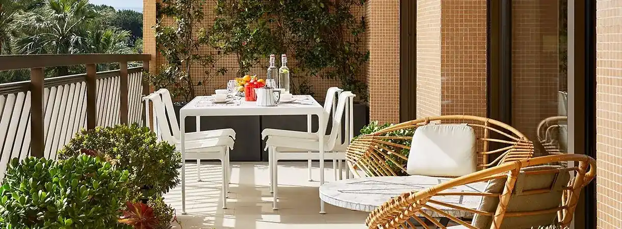 - Dobre si zmerajte veľkosť balkóna alebo terasy a podľa toho vyberajte počet kresiel a stoličiek.