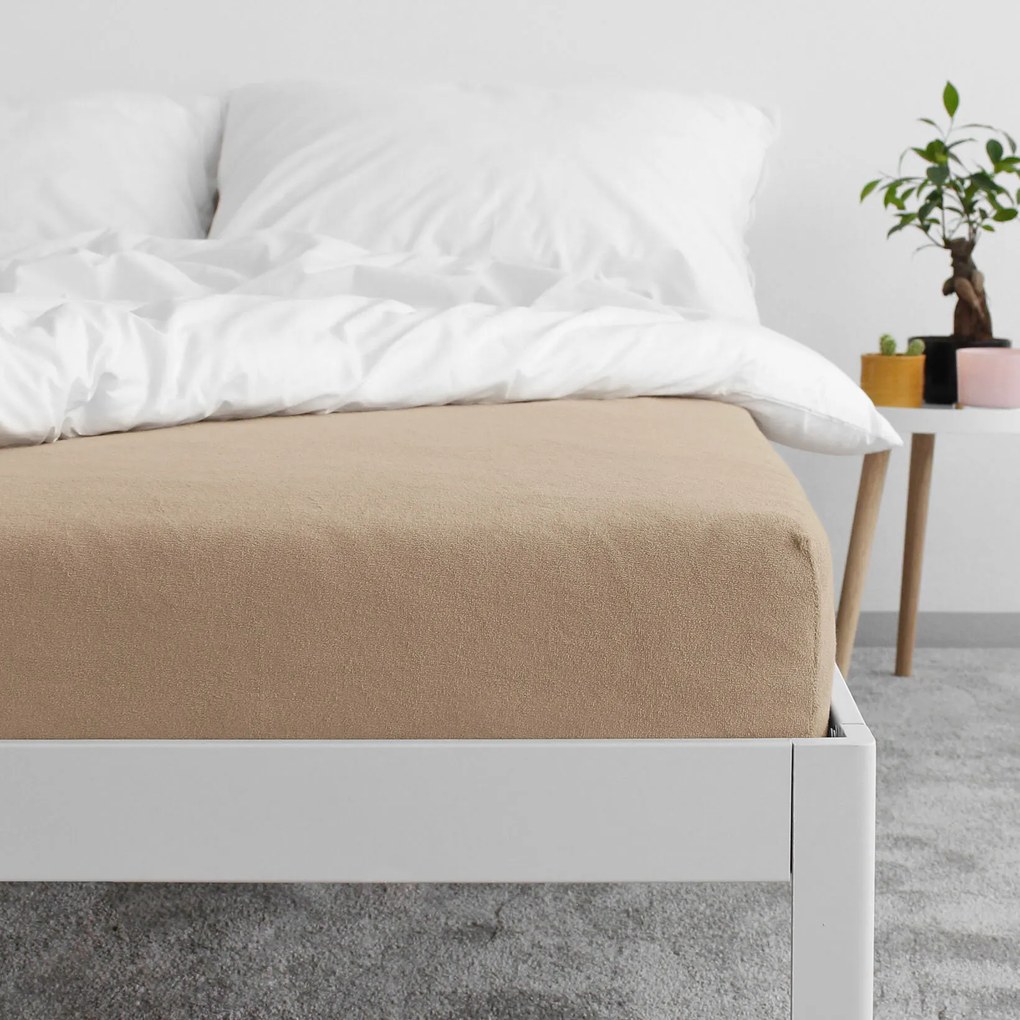 Goldea froté plachta s napínacou gumou - svetlo hnedá 180 x 200 cm