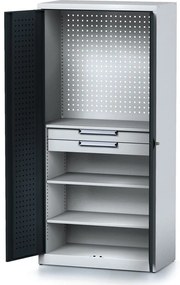 Alfa 3 Policová dielenská skriňa 2-dverová MECHANIC, 2 zásuvky, 3 police, 920 x 500 x 1950 mm, antracitové dvere
