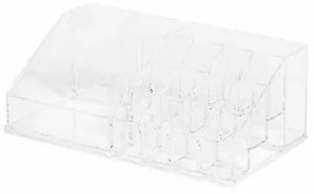 Tento priestranný organizér Compactor s 15 priehradkami je skvelým a priestranným pomocníkom vo vašej snahe udržať si poriadok v kozmetike. Vyrobený z odolného číreho plastu. Organizér Compactor ponúka dostatok priestoru pre uloženie všetkého potrebného pre každodenné líčenie. Pohodlne doň umiestnite laky na nechty, rúže, všetky potrebné štetčeky alebo vatové tyčinky. Všetko bude rýchlo po ruke a kedykoľvek k dispozícii, prehľadne roztriedené.Použitý číry plast je vo svojej jednoduchosti nadčasový. Organizér sa tak bude hodiť do akéhokoľvek interiéru. Je tak akurát veľký, aby sa zmestil na bežný kozmetický stolík a zároveň nezaberal zbytočne veľa miesta. Výrobok je veľmi jednoduchý, ale s možnosťami, z ktorých budete určite nadšení. Udržanie poriadku na kozmetickom stolíku bude s týmto organizérom Compactor hračka.