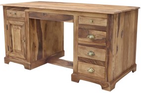 Objavte kúzlo exotického dizajnu v podobe nášho stola z masívneho dreva s rozmermi 160x80x76, ktorý je vyrobený z prvotriedneho palisandrového dreva priamo z Indie. Tento pôsobivý kus nábytku z masívneho dreva dodá vašej kancelárii alebo pracovni nielen nádych luxusu, ale predovšetkým ponúkne praktickosť a odolnosť. So šírkou 160 cm, hĺbkou 80 cm a výškou 76 cm poskytuje tento stôl dostatok priestoru na prácu a odkladanie rôznych kancelárskych potrieb. Stôl z masívneho dreva sa môže pochváliť šiestimi priestrannými zásuvkami vhodnými na uloženie dokumentov alebo písacích potrieb a jednými dvierkami s elegantnou kovovou rukoväťou, ktoré mu dodávajú štýl a pohodlie. Vďaka kvalitnému spracovaniu a krásnej kresbe dreva bude tento stôl ústredným bodom každej miestnosti. Výberom nábytku z masívneho dreva zabezpečíte, že váš interiér bude nielen esteticky pôsobivý, ale aj odolný a dlhotrvajúci. Ak k tomu pridáte jedinečný prírodný materiál palisandrové drevo, získate stôl, ktorý je priamo synonymom kvality a elegancie. Tento stôl je ideálnym doplnkom do kancelárií alebo domácností, ktoré si cenia solídnosť a krásu. K tomuto typu stola z masívneho dreva sa často kupujú aj knižnice z masívneho dreva, komody z masívneho dreva, kancelárske stoličky a vitríny z masívneho dreva, ktoré dokonale doplnia váš priestor a poskytnú ďalšie možnosti úložného priestoru.