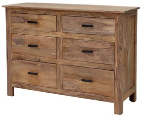 Objavte elegantnú kombináciu tradície a moderného dizajnu v našej komode z masívneho palisandrového dreva s rozmermi 120x45x90 cm. Táto úžasná komoda z masívneho dreva prináša do vašej predsiene nielen funkčnosť, ale aj pôvab exkluzívneho indického remesla. Vynikajúce palisandrové drevo, známe svojou odolnosťou a jedinečnou kresbou, z nej robí nadčasový kus nábytku, ktorý zažiari v každom interiéri. Komoda ponúka šesť priestranných zásuviek s kvalitnými kovovými úchytkami, ktoré poskytujú dostatok úložného priestoru pre všetky vaše potreby. Jej pevná konštrukcia a elegantný dizajn z nej robia ideálnu voľbu pre každého, kto hľadá praktické a štýlové riešenie pre svoju domácnosť. Táto komoda z masívneho dreva je nielen praktická, ale vášmu interiéru dodá aj nádych exotiky. Zamilujete si jej rustikálny šarm a precízne spracovanie, ktoré kombinuje tradičné remeselné techniky s modernými prvkami. Tento krásny kus nábytku môžete doplniť ďalšími kúskami, ako je jedálenský stôl, kreslo, knižnica alebo konferenčný stolík. Vďaka týmto kombináciám si ľahko vytvoríte harmonický a štýlový interiér, ktorý zaujme na prvý pohľad. Pre ďalšie kousky nábytku z masívu navštívte naše stránky.