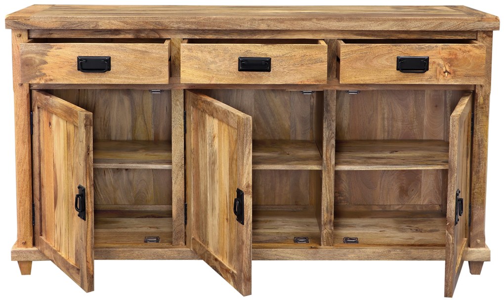 Prineste do svojho domova nádych exotiky a elegancie s našou Komodou z masívu mango s rozmermi 160x45x85. Táto úchvatná komoda, ručne vyrobená v Indii, je skvelým príkladom kvality a dizajnu, ktoré môžu obohatiť váš interiér. Masívne mango drevo dodáva komode jedinečný vzhľad a prirodzenú odolnosť. Kombinácia troch praktických zásuviek na vrchu a troch spodných dvier s kovovým úchytnom ponúka dostatok úložného priestoru pre organizáciu vašich vecí. Komoda je nielen funkčná, ale aj esteticky príťažlivá. Prírodná kresba dreva z manga prináša teplý a sofistikovaný dojem, ktorý dokonale ladí s rôznymi štýlmi interiéru, či už je váš domov zariadený v modernom, rustikálnom alebo vintage štýle. Je ideálnou voľbou pre spálne, obývacie izby alebo vstupné haly, kde svojim exotickým vzhľadom okamžite upúta pozornosť. K tejto nádhernej komode z masívu mango si často ľudia dokupujú ďalšie prvky nábytku, ako sú nočné stolíky, knižnice, konferenčné stolíky alebo televízne stolíky. Tieto doplnky pomáhajú zvýrazniť jednotný vzhľad interiéru a zdôrazňujú krásu prírodného dreva.