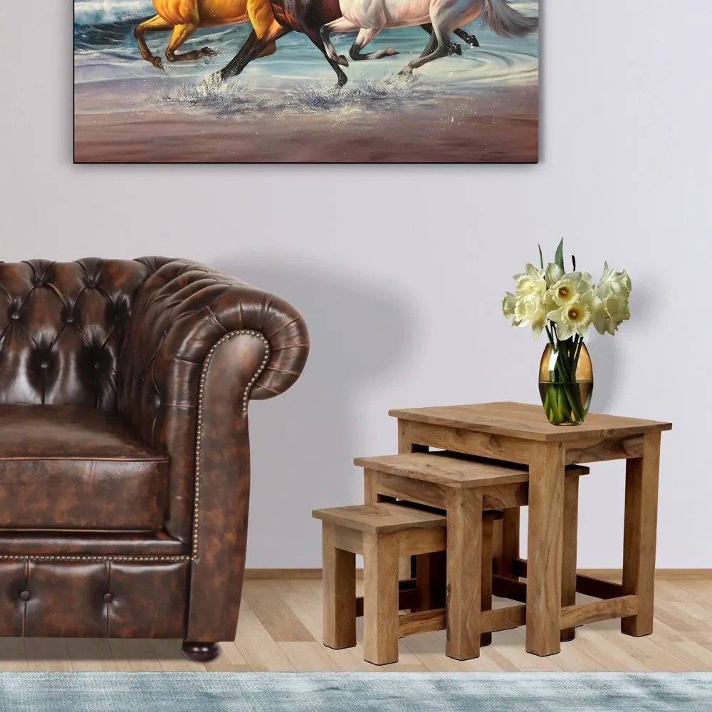 Odkladacie stolíky masív súprava 3 ks sú vyrobené z kvalitného masívneho palisandrového dreva. Odkladacie stolíky z masívu ktoré máme na sklade sa dajú prezrieť osobne alebo objednať na zákazku v ktoromkoľvek z našich ponúkaných odtieňov! Indický koloniálny nábytok palisander masív.