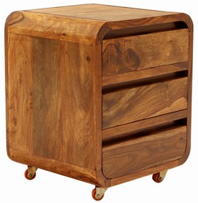 Tento jedinečný nočný stolík drevo palisander 45x60x40 je perfektným doplnkom pre váš interiér. Nočný stolík drevo je navrhnutý s dôrazom na detail a vyrobený z kvalitného indického palisandra, materiál, ktorý je cenený pre svoju pevnosť a nádhernú textúru. Celý dizajn tohto nočného stolíka je podtrhnutý masívnym prevedením, vďaka ktorému je tento kúsok nielen elegantný, ale aj veľmi odolný. S jeho šírkou 45 cm, hĺbkou 40 cm a výškou 60 cm sa ľahko zmestí k posteli a poskytne dostatok úložného priestoru, ktorý ponúka tri praktické šuplíky. Kolieska umožňujú jednoduchú manipuláciu, čím sa stáva flexibilným prvkom vášho nábytku. Výroba z indického palisandra dodáva nočnému stolíku drevo prírodný a teplý vzhľad, ktorý harmonizuje s akýmkoľvek štýlom interiéru. Spolu s iným dreveným nábytkom, ako sú skrine, postele, komody, a police, môžete vytvoriť útulný a harmonický priestor, kde každý prvok hrá svoju rolu pri vytváraní harmonického domova.