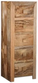 Objavte krásu a eleganciu nábytku z masívneho dreva s našou zásuvkovou komodou z kvalitného mangového dreva. Táto jedinečná komoda s rozmermi 60 × 120 × 45 cm je nielen praktickým riešením úložného priestoru, ale aj štýlovým doplnkom vašej domácnosti. Pochádza z Indie, čo jej dodáva exotický vzhľad a zaručuje autentickú kvalitu. Je ideálnou voľbou pre tých, ktorí ocenia masívny a odolný nábytok. Zásuvková komoda z masívneho dreva pozostáva z piatich priestranných zásuviek, ktoré ponúkajú dostatok priestoru na uloženie oblečenia, posteľnej bielizne alebo iných domácich potrieb. Vďaka povrchovej úprave mangového dreva si zachováva svoj prirodzený vzhľad a štruktúru, čím dodá vášmu interiéru jedinečné čaro. Mango je ekologický materiál a vyznačuje sa vysokou odolnosťou proti poškodeniu, čo prispieva k dlhej životnosti tejto komody z masívneho dreva. Vo vašej predsieni sa táto zásuvková komoda stane ústredným prvkom, ktorý upúta pozornosť a dodá miestnosti harmonický vzhľad. Vďaka svojej univerzálnosti a nadčasovému dizajnu je vhodná do rôznych štýlov interiéru, od klasického až po moderný. Ak ste fanúšikom prírodných materiálov a hľadáte spoľahlivý úložný priestor, táto komoda z mangového dreva je tou správnou voľbou. K tejto komode si ľudia často kupujú ďalšie kusy masívneho nábytku, ako napríklad: skrine z masívneho dreva, postele z masívneho dreva, jedálenské stoly z mangového dreva a konferenčné stolíky z masívneho dreva. Tieto kusy nábytku spolu vytvárajú harmonický a ucelený vzhľad vášho domova.
