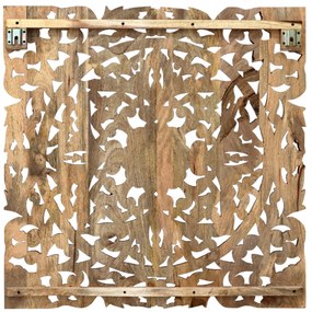 Vyrezávaný obraz 100x100 je jedinečné umelecké dielo, ktoré spája tradičné indické remeslo s moderným dizajnom. Ručne vyrezávaný z kvalitného mangového dreva, tento obraz vyniká nie len svojou veľkosťou, ale predovšetkým detailne prepracovanými vzormi. Každý kus je unikátny a odráža umelecké majstrovstvo a precíznosť indických remeselníkov, ktorí tento skvost vytvorili vo svojej stolárskej dielni. S rozmermi 100x3x100 cm je tento vyrezávaný obraz ideálnou dominantou vášho interiéru, či už ho umiestnite do obývačky, spálne alebo pracovne. Materiál mango drevo dodáva obrazu prirodzenú eleganciu a teplý odtieň, ktorý vytvára útulnú atmosféru v každej miestnosti. Pridajte k tomuto vyrezávanému obrazu ďalšie exkluzívne kúsky nábytku, ako sú napríklad ručne vyrobené stolíky, lavice s dekoratívnym vyrezávaním, komody s vyrezávanými detailmi alebo jedinečné drevené knižnice. Spojenie týchto prvkov vytvorí harmonický celok, ktorý oživí každý interiér a vnesie do neho zdařilú kombináciu exotiky a elegancie. Pre tých, ktorí hľadajú inšpiráciu na zariadenie svojho interiéru pomocou masívneho nábytku, nábytku z masívu alebo rustikálneho nábytku, tento obraz je dokonalým výberom.