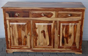 Preskúmajte čaro exotiky a elegancie s našou luxusnou komodou z dreva palisander, ktorá je ideálnym doplnkom do každej predsiene či obývacej izby. Táto nádherná komoda s rozmermi 160x90x45 cm ponúka nielen štýl, ale aj praktickosť. Je vyrobená z kvalitného palisandrového dreva pochádzajúceho z Indie, čo zaručuje jedinečný vzhľad a dlhodobú odolnosť. Vďaka trom priestranným zásuvkám v hornej časti a trom spodným dvierkam s elegantnými kovovými úchytkami máte dostatok úložného priestoru pre vaše osobné aj dekoratívne predmety. Palisandrové drevo svojím luxusným odtieňom vdýchne vášmu interiéru nový život, zatiaľ čo jeho pevnosť zabezpečí, že komoda bude slúžiť mnoho rokov. Tento kúsok sa ľahko kombinuje s ďalšími prvkami luxusného nábytku, ako je napríklad elegantný jedálenský stôl, sofistikovaná knižnica, štýlová skriňa alebo dizajnový konferenčný stolík. Pre milovníkov autentického masívneho nábytku je táto komoda z masívu dokonalou voľbou, ktorá kombinuje krásu prírodných materiálov a praktickosť. Každý kúsok je jedinečný a dokonale doplní váš interiér, či už ho skombinujete s ďalším nábytkom z masívu alebo rustikálnym nábytkom, ktorý je čoraz obľúbenejší.