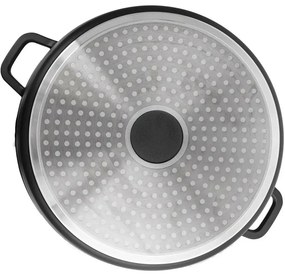 Masívny hrniec s pokrievkou s veľmi kvalitným nepriľnavým povrchom PFLUON GRANIT. Môžete v ňom variť, smažiť, dusiť, opekať a zapekať s minimálnou spotrebou tuku. Pripravovaný pokrm sa nepripeká. Pokrievka s otvorom pre únik prebytočnej pary.Vhodný na všetky typy spotrebičov vrátane indukcie i rúry. Odporúčame používať kuchynskú chňapku. Pri plynových sporákov voľte správnu veľkosť plameňa, pri elektrických, sklokeramických a indukčných varičov je nutné zvoliť zodpovedajúcu veľkosť platničky. Pripravovaný pokrm možno na sporáku pripraviť a potom ho vložiť do rúry. Pripravené jedlo môžete pohodlne skladovať v hrncoch tiež v chladničke. Pri použití v rúre s pokrievkou max. do 200 °C. Možno umývať v umývačke riadu. Materiál hrnca: hliníková zliatina s nepriľnavým povrchom. Materiál pokrievky: sklo, nehrdz. oceľ.