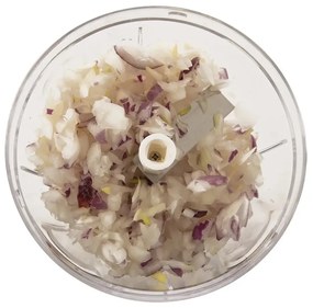 Krájač na cibuľu a inú zeleninu (uhorky, paradajky, papriku) vás prekvapí - jednoducho a rýchlo naseká bez námahy na drobné kúsky predovšetkým cibuľu. Vložíte cibuľu rozkrojenú na štvrťky (alebo inú zeleninu na menšie dieliky), niekoľkokrát zatiahnete a povolíte tiahlo na viečku a je hotovo. Rozmery: pr. 12 cm, v. 9 cm. Nie je vhodné do umývačky riadu (viečko vôbec nie, misku neodporúčame, aby nedošlo k zafarbeniu povrchu).