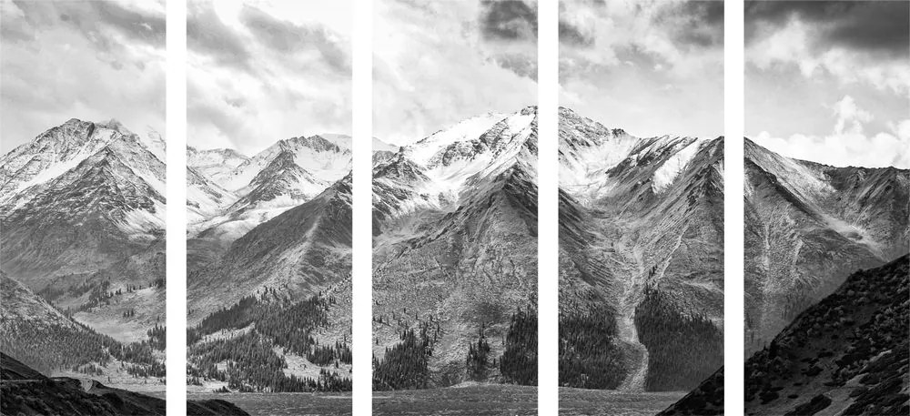 5-dielny obraz nádherná horská panoráma v čiernobielom prevedení