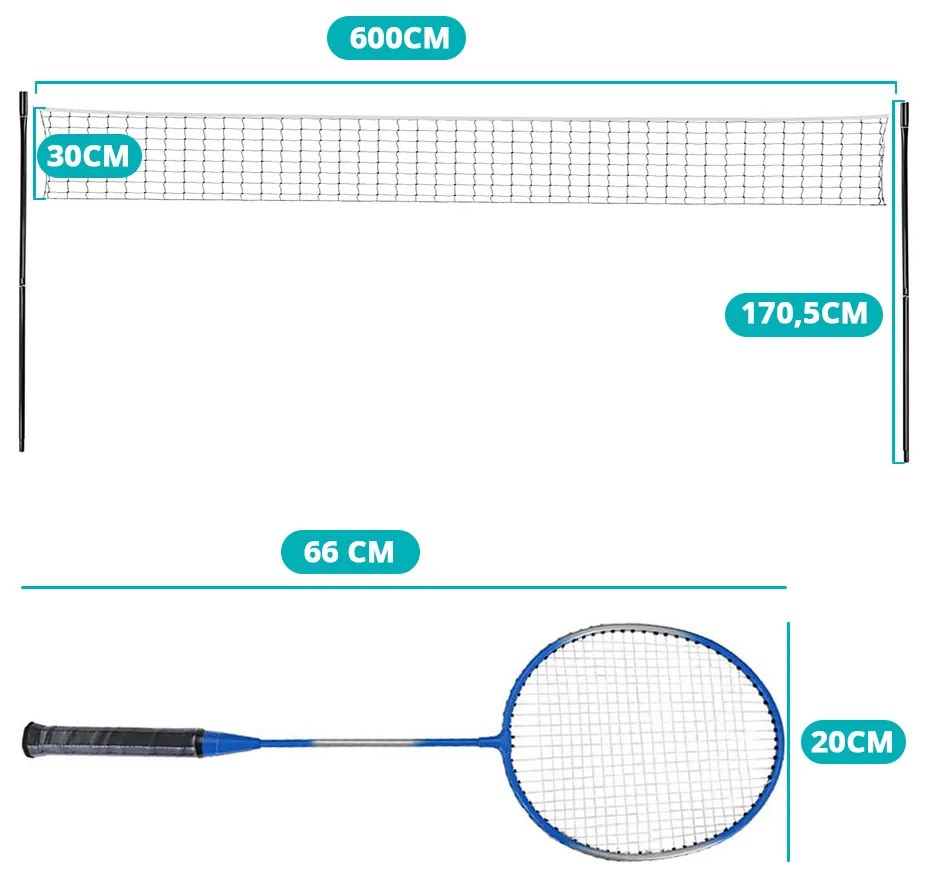 Prenosná bedmintonová súprava so sieťou je ideálna na vonkajšiu zábavu. Možno hrať až vo štyroch, jednoducho sa skladá a obsahuje všetko potrebné vybavenie. Ideálna pre rodiny, priateľov alebo oddych na dovolenke. Zábava vonku pre každú vekovú kategóriuMáloktorá hra je taká jednoduchá a zároveň zábavná ako bedminton. Vďaka tejto súprave nemusíš robiť kompromisy – všetko vybavenie zmestíš do jedného prenosného vaku. Sieť môžeš postaviť v parku, na pláži či v záhrade a hra môže začať!Jednoduché použitie, maximálna zábavaBedmintonová súprava ponúka plnohodnotný zážitok pre až štyroch hráčov. Ľahké rakety, tri loptičky a šesťmetrová sieť zabezpečia, že si každý užije hru. Okrem zábavy podporuje aj pohyb – ideálna športová aktivita.Prenositeľnosť a praktickosťVďaka nízkej hmotnosti a prenosnému vaku je súprava ľahko prenosná. Výborná na výlety, dovolenku či víkendový program. Nepotrebuješ špeciálne ihrisko – stačí rovná plocha a hra môže pokračovať!Rýchla montáž kdekoľvekRám siete sa dá postaviť za pár minút a upevniť kolíkmi, čím sa zabezpečí stabilný herný priestor. Montáž je jednoduchá a rýchla, nepotrebuješ žiadne náradie. Po skončení hry všetko ľahko vložíš späť do vaku.Technické údajeHmotnosť výrobku: 1 kgRozmery rakety: 66×20 cmVýška stojana so sieťou: 170,5 cm (zapichnutá 161,5 cm)Rozmer siete napnutá: 600×30 cmRozmery balenia: 69×23×5 cmHmotnosť balenia: 1,2 kgHmotnosť produktu: 1,1 kgObsah balenia4 kusy badmintonových rakiet3 kusy bedmintonových loptičiek2 kusy skladacích stojanov na sieť1 sieť4 kolíky so šnúrami