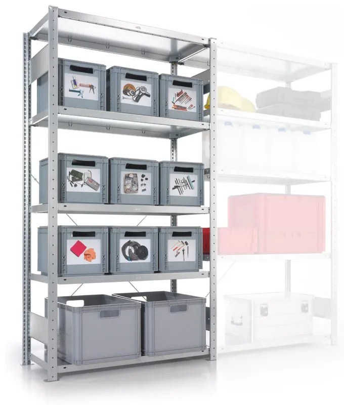 META Policový regál CLIP, 230 kg, 2500 x 1000 x 600 mm, prídavný regál