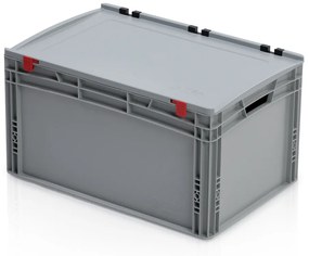 · stohovateľné plastové prepravky s vrchnákmi pre bezpečnú úschovu a prepravu tovaru a materiálu · vyrobené z polypropylénu odolného voči deformácii tvaru · odnímateľné vrchnáky sú vybavené plastovými pántmi · farba sivá · teplotná odolnosť -20 °C až + 40 °C · výška debny je uvádzaná aj s vekom, výška samotného veka 15 mm