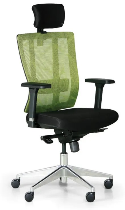 Kancelárska stolička so sieťovaným operadlom WOLF II, nastaviteľné podrúčky, hliníkový kríž, zelená