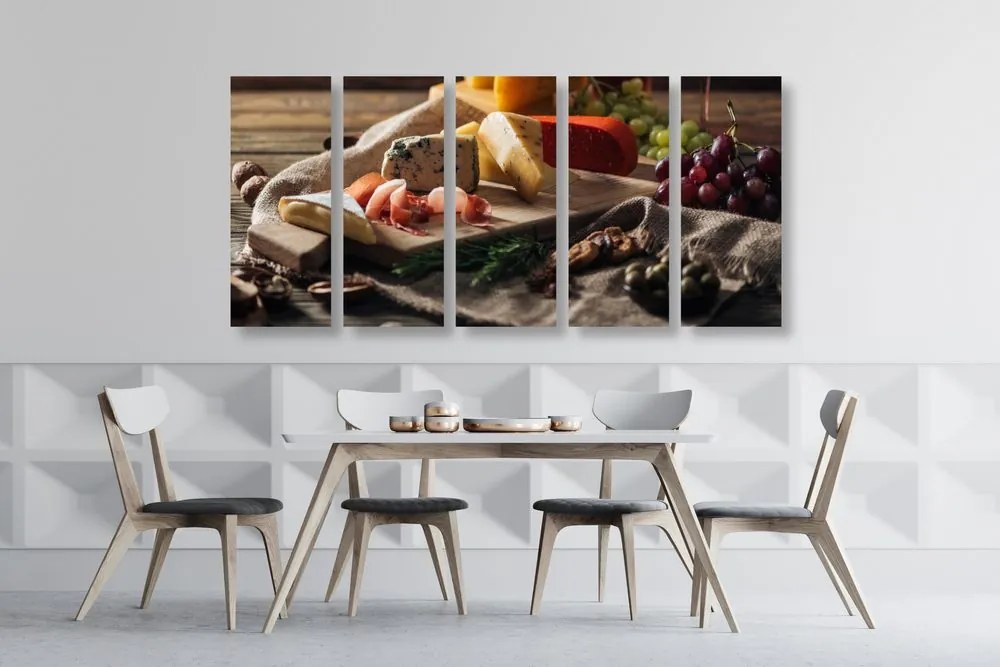 5-dielny obraz variácie syra na doske