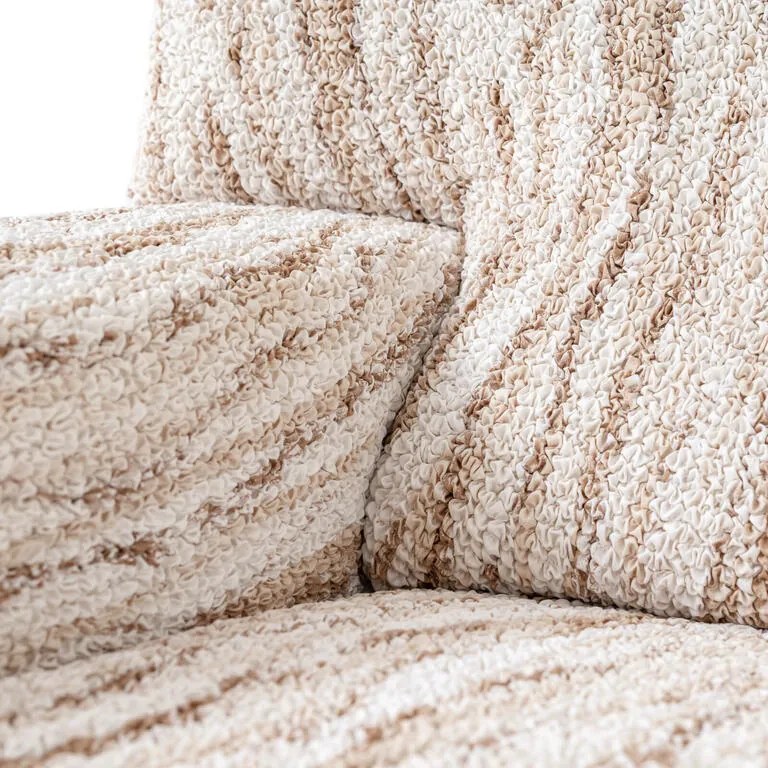 Talianska elegancia v prémiovej kvalite Vôňa slanej vody vo vzduchu, šumenie morskej peny na zlatistom piesku, vlny tiahnuce sa na nekonečný obzor… Presne taký je oceán, ktorým sa nechala inšpirovať aj rovnomenná kolekcia Oceano. Jej motívy pripomínajú nielen morskú hladinu, ale aj stopy vĺn odtlačené do piesočných pláží. Výrazný, ale napriek tomu jemný dizajn do vášho domova prinesie pokoj a harmóniu, ktorú vie navodiť iba more. A čo viac – spenenú vodu, ktorá sa na brehu mieša s pieskom a uteká späť do mora, vám pripomenie aj pekná štruktúra jemného (a napriek tomu veľmi odolného) mikrovlákna na gumičkovej osnove. Popredný svetový výrobca GAICO vyrába exkluzívne poťahy už vyše dvadsať rokov a za tú dobu má množstvo spokojných zákazníkov, ktorí sa k jeho elastickým poťahom opakovane vracajú. Unikátna plastická štruktúra Poťahy Oceano sú vyrobené zo špeciálneho mikrovlákna s pružnou gumičkovou osnovou a sú unikátne svojou patentovanou „žabičkovou“ štruktúrou. Tá dodáva poťahom originálny vzhľad a takmer zamatovú hebkosť príjemnú na dotyk. Tkanina je vyrobená z veľmi jemných a pevných a odolných vlákien, ktorých veľkosť je 100-krát menšia ako ľudský vlas. Prémiová kvalita prevedenia a prvotriedny elastický materiál zaručujú dlhú životnosť. Výrazný béžový dekor presvetlí celý interiér a dodá vašej izbe pozitívnu atmosféru bez náročnej výmeny celej sedačky. Perfektne sedia a spoľahlivo ochránia Patentovaná technológia bi-elastických poťahov zaisťuje ich roztiahnuteľnosť do šírky aj do výšky. Poťahy perfektne obopnú kreslo či pohovku ako pravé čalúnenie a zvýraznia ich tvary a línie. Vzhľad sedačky s nimi môžete ľahko meniť kedykoľvek podľa nálady alebo napríklad ročného obdobia. Poťahy OCEANO prinesú vášmu sedaciemu nábytku nielen nový vzhľad, ale ho aj ochránia pred škvrnami, prachom či opotrebovaním. Ušetria čas a náklady na výmenu sedačky a predĺžia jej životnosť. Poťahy ľahko vyperiete v práčke a usušíte v sušičke alebo klasicky vyvesením. Ani opakovaným praním poťahy nestrácajú svoju elasticitu. Upozornenie: Poťahy nie sú vodeodolné. Ako zmerať kreslo Naše napínacie poťahy sú navrhnuté tak, aby sa perfektne prispôsobili väčšine tvarov a typov kresiel, sedačiek aj ostatných typov čalúneného nábytku. Porovnajte rozmery vášho kresla či pohovky s nákresom. V prípade pochybností medzi dvoma rozmermi poťahov odporúčame vziať ten väčší. Prebytočnú látku ľahko zasuniete medzi sedák a operadlo. K zafixovaniu poťahu odporúčame použiť Upevňovací valčeky. Pokiaľ si nebudete istí, či je poťah pre vaše kreslo či sedačku vhodný, rady vám poradia naše telefónne operátorky, on-line chat alebo píšte na info@dedoma.sk.
