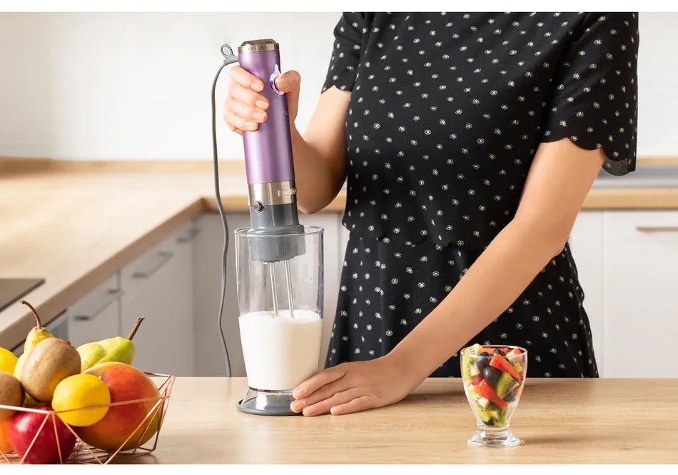 Vykúzlite výbornú desiatu pre vaše ratolesti, nadýchaný krém na narodeninovú tortu alebo nátierku na večierok s jediným mixérom.Technické parametre a špecifikácie: technológia TITANIUM QuadBlade (záruka 6 ROKOV na motor) extra tichý DC motor výkon 1200 W materiál nadstavca: nehrzd. oceľ materiál nádoby: plast počet rýchlostí 20 turbo režimSada obsahuje: 1x nádoba s viečkom s objemom 800 ml 1x 1250 ml sekáčik s nehrdz. nožmi 1x nehrdzavejúci dvojmetlový šľahací nadstavec