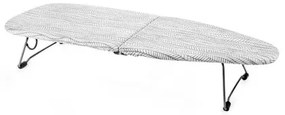 Kompaktná žehliaca doska na úsporu miesta pri žehlení. Používa sa na stole alebo inej pracovnej ploche. Pevná žehliaca doska s dostatočne veľkou plochou je opatrená dierovaním, ktoré zabraňuje nežiaducemu zrážaniu pary. Bavlnený poťah s kvalitným plsteným polstrovaním je vynikajúci na komfortné a plynulé žehlenie.Dosku ľahko rozložíte a zložíte, účinné EVA protišmyky zaisťujú jej stabilitu pri žehlení a zároveň chránia povrch stola.Parametre: materiál: odolná kovová konštrukcia, bavlnený poťah čistenie: poťah perte pri teplote do 40 °C