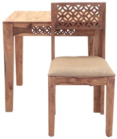 Drevený jedálenský set pre 4 osoby z masívu palisandra je perfektným doplnkom do každej modernej či tradičnej jedálne. Tento elegantný jedálenský set, ktorý je súčasťou kolekcie MIRA, prináša do vášho domova kúsok Indie. Vyrobený z vysoko kvalitného palisandrového dreva, ktoré je známe svojou odolnosťou a krásnou prírodnou kresbou, drevený jedálenský set je ideálnou voľbou pre tých, ktorí hľadajú štýlový a trvanlivý nábytok. Jedálenský stôl o rozmeroch 80 x 80 x 76 cm skvele poslúži ako pre rodinné večere, tak aj pre stretnutia s priateľmi. Doprevádzaný štyrmi pohodlnými drevenými stoličkami o rozmeroch 45 x 90 x 45 cm, tento jedálenský set do vášho priestoru prináša harmóniu designu a funkčnosti. Každý kus je dôkladne spracovaný, čo zaisťuje nielen esteticky príjemný vzhľad, ale aj dlhú životnosť. Vďaka použitiu masívneho dreva si môžete byť istí, že drevený nábytok vydrží aj tie najnáročnejšie podmienky každodenného používania. Drevený nábytok vhodný pre túto jedálenskú súpravu: 1- Drevený príborník na odkladanie riadu a stolovej bielizne. 2. Drevená vitrína na vystavenie sklenených výrobkov a dekorácií. 3. Drevený konferenčný stolík do obývacej časti. 4. Drevená lavica na rozšírenie sedenia v jedálni. Detail produktu: 1x jedálenského stola - š/v/h: 80/76/80 cm KÓD: MIRA-80 4x stoličiek - š/v/h: 45/90/45 cm KÓD: MIRA-CHT