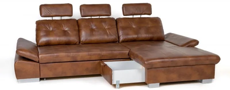 Kožená moderná sedacia súprava DIOR s rozkladom, ľavá, hnedá (s-12)