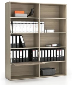 PLAN Široký kancelársky policový regál LAYERS, 6 boxov, 1582 x 400 x 1905, dub prírodný / dub morený