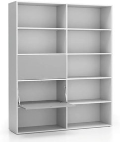 PLAN Široký kancelársky policový regál LAYERS, 2 boxy, 1582 x 400 x 1905, biela / sivá