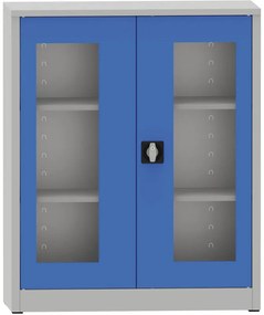 Kovona Zváraná policová skriňa s presklenými dverami, 1150 x 950 x 500 mm, sivá/modrá
