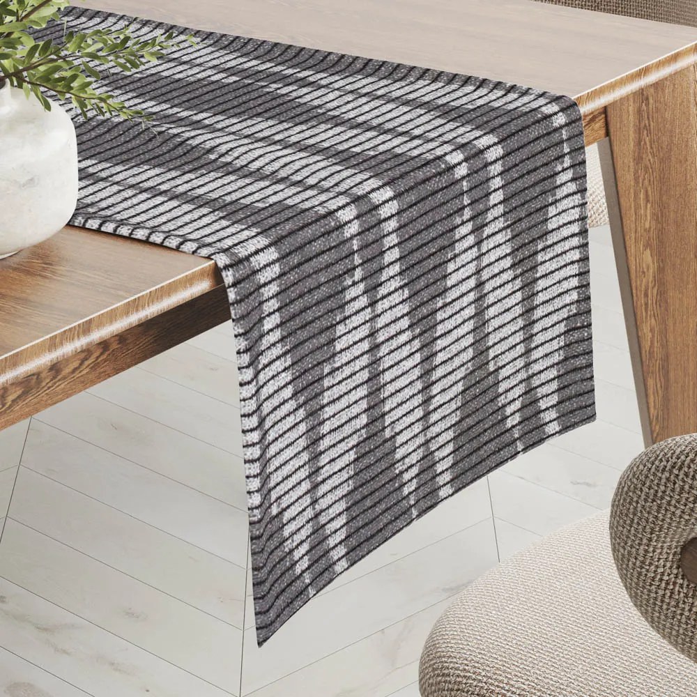 Dekoračný behúň na jedálenský stôl so vzorom svetlo sivých obrazcov a pásikov. Je ušitý z kvalitnej a pevnej španielskej látky z 55% bavlny a 45% polyesteru. Behúň dodávame kompletne obšitý. Dekoračné behúne Leona sú praktickým doplnkom interiéru Vášho domu, bytu, chalupy a sú vhodné aj do hotelov a reštaurácií. Odporúčaný presah (previs) behúňa je cca 20-30 cm na každej strane stola, tzn. ak máte stôl dlhý napr. 100 cm, objednajte behúň s dĺžkou 140 až 160 cm. Šijeme v našich krajčírskych dielňach v ČR, ponúkame aj rozmery na mieru.