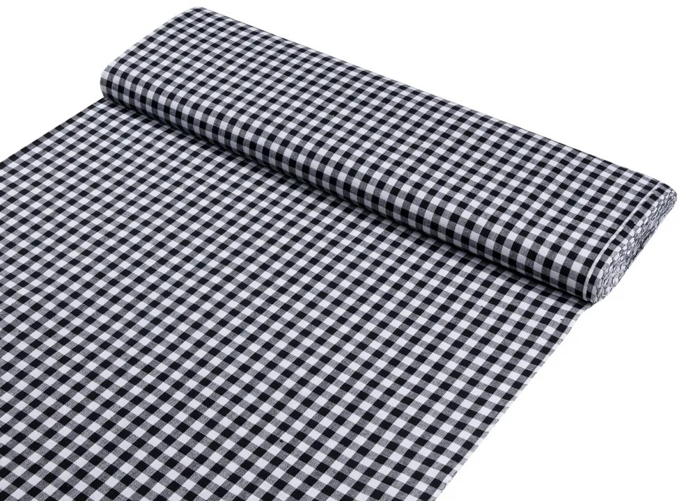 Bavlnený oválny obrus na stôl so vzorom malých čierno-bielych kociek vo veľkosti 1 x 1 cm. Je ušitý z kvalitnej látky Olivia, tkanej z farbených nití pravej indickej bavlny. Obrus dodávame kompletne obšitý. Dekoračné obrusy Olivia sú praktickým doplnkom interiéru Vášho domu, bytu, chalupy a sú vhodné aj do hotelov a reštaurácií. Ako správne zvoliť rozmer obrusu? Uvedené rozmery sú rozmery obrusu, nie stola. Bežný doporučený presah obrusu je cca 20-30 cm na každú stranu stola, tzn. ak máte stôl s rozmerom napr. 60x100 cm, objednávajte obrus s rozmerom 100x140 cm až 120x160 cm, vždy však s prihliadnutím na vlastné individuálne požiadavky. Šijeme v našich krajčírskych dielňach v ČR, ponúkame aj rozmery na mieru.