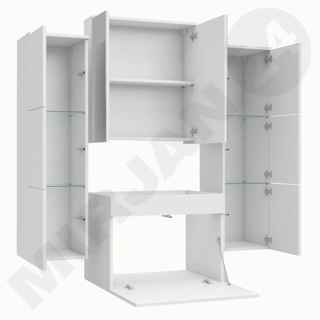 Kúpeľňový nábytok Mandy je funkčným vybavením modernej kúpeľne. Elegantný a efektívny vzhľad a priestranné police zaručujú spokojnosť s používaním.Základom súpravy je závesná skriňa. Systém políc vo vnútri priestrannej skrinky uľahčuje uloženie potrebného príslušenstva alebo uterákov. Ozdobou kúpeľňového nábytku je pôsobivá skriňa so zrkadlom, vďaka ktorej získate diskrétny úložný priestor pre malé predmety. Veľké zrkadlo kúpeľňovej skrinky odráža svetlo a interiér pôsobí útulnejšie. Komplet je doplnený umývadlovou skrinkou s výsuvnými dvierkami.Výberom zaveseného kúpeľňového nábytku dáte svojej kúpeľni charakter a opticky ju zväčšíte. Závesný nábytok navyše uľahčuje udržanie kúpeľne v čistote. Sada kúpeľňového nábytku je vybavená systémom push click, ktorý uľahčuje každodenné používanie.Uvedená cena zahrňuje nasledujúce komponenty:Skrinka 11: šírka: 30 cm, výška: 110 cm, hĺbka: 31 cm, x 2ksSkrinka 13: šírka: 60 cm, výška: 47 cm, hĺbka: 45 cmZrkadlo 14: šírka: 60 cm, výška: 65 cm, hĺbka: 17 cmFarby: možnosť výberu farieb tuPrevedenie:drevotriesková doska laminovaná 15mm,front: MDF,umývadlo z dolomitového konglomerátu ECCE 610 (šírka: 61cm, hĺbka: 46 cm, výška: 14,2cm), možnosť doobjednaniazrkadloOsvetlenie LED biele je zahrnuté v cenes možnosťou dokúpenia umývadlovej batérie,System Push ClickZáručná doba: 24 mesiacov