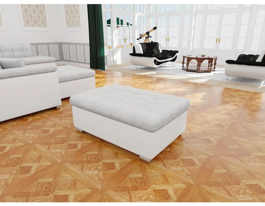 Taburetka na sedenie Tony veľká - keď usporiadame párty a zdá sa nám, že naša sedacia súprava bohužiaľ nie je dostatočne veľká pre všetkých našich pozvaných hostí, je to skvelá príležitosť kúpiť si taburetku! Ideálne sa hodí ako núdzové sedenie pre hostí, ktorí sa určite budú cítiť pohodlne pri sedení na tejto taburetke. Pri výrobe taburetky sa kladie dôraz na každý detail. Prešívané sedenie poskytuje pohodlie, keď sa rozhodneme si na chvíľu na ňu posadiť. Veľkou výhodou tejto taburetky na sedenie je možnosť výberu rôznych farebných prevedení, ktoré nakoniec potešia nielen našich hostí ale pridávajú kúzlo aj do nášho interiéru. Rozmery: dĺžka: 96 cm šírka: 70 cm výška 41 cm Prevedenie: drevený rám + drevotrieska vysokoelastická pena T 2844 neotvárateľný taburet Záručná doba: 24 mesiacov