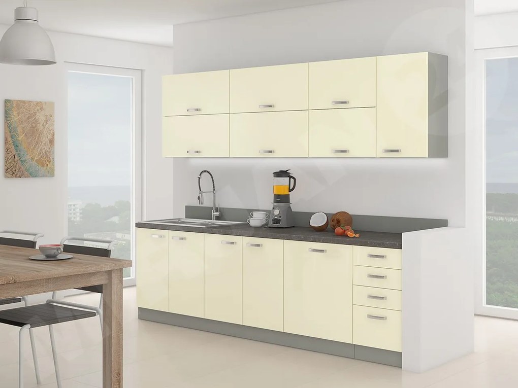 Kuchyňa Multiline IV, Farby: šedý / krém lesk, Drez: áno, Príborník: áno, Pracovná doska:: nie