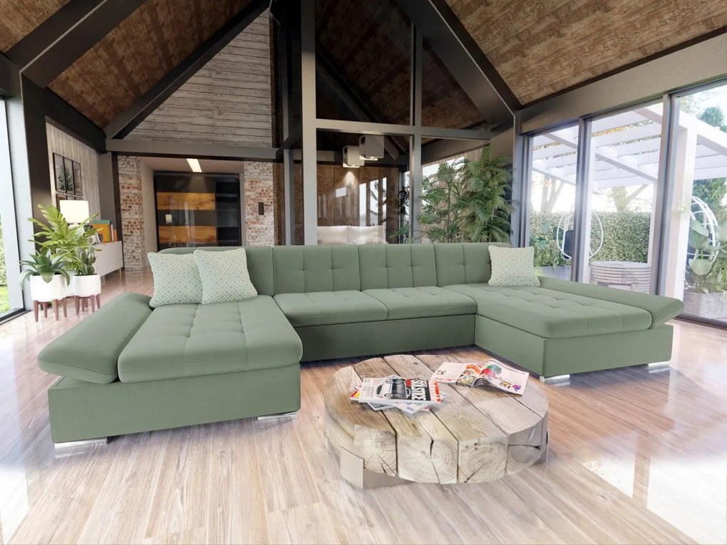 Kto by nesníval o tom, že si po náročnom dni bude môcť natiahnuť nohy na pohodlnej rohovej pohovke? Alebo aby si večer mohol sadnúť v širšej skupine priateľov bez obáv, že si navzájom narazia lakte?Rohová pohovka Agata s funkciou spania tieto očakávania spĺňa. Táto moderná rohová pohovka určite osloví milovníkov netradičnej elegancie v skutočne hollywoodskom štýle. Jej zaujímavá forma osvieži zariadenie interiéru a zabezpečí, aby si celá obývacia izba zachovala jednotný štýl. Rohová pohovka typu "U" zaručuje pocit pohodlia, komfortu a relaxu počas rodinného voľného času aj počas stretnutí s priateľmi. Takýto tvar jednoducho musí byť v interiéri vystavený!Priestranná rohová pohovka zaujme každého v dome. Bude tiež skvelým priestorom na detské hry - vaše deti si môžu postaviť domček z priložených vankúšov, zatiaľ čo vy si budete užívať nerušený oddych v druhej časti nábytku a zároveň dohliadať na ich bezpečnosť.Čalúnené operadlo je pevne pripevnené. Nastaviteľné podrúčky vám uľahčia nastavenie najpohodlnejšej opory. Konštrukcia sedadla bude mať zase pozitívny vplyv na vyrovnanie jednotlivých segmentov chrbtice, čím vám poskytne zdravé podmienky na relaxáciu. Po rozložení dosahuje rohová sedačka s funkciou spania nadpriemernú plochu na spanie, ktorá vám poskytne každodenný komfort a vašim hosťom pohodlný spánok. Vďaka dvom kontajnerom na lôžkoviny získate ďalší, diskrétny úložný priestor na sezónne oblečenie a zriedkavo používané doplnky.Mäkké tvary rohovej pohovky sa ponúkajú v pozoruhodných farbách. Široký výber farieb umožňuje ľahko zvýrazniť kvality vášho interiéru. Zadná časť čalúnená látkou vám navyše dáva možnosť umiestniť nábytok ľubovoľným spôsobom - aj v centrálnej časti obývačky bude vyzerať veľmi dobre. Chrómované predné nohy dodávajú nábytku jemný šarm a zároveň dodávajú zariadeniu jemný nádych modernosti.Vďaka použitiu vysokokvalitných komponentov sa rozkladacia rohová pohovka bude dlho tešiť svojej spoľahlivosti a odolnosti.Rozmery:šírka: 360 cm,hĺbka: 160 cm,výška: 75 cm,plocha na spanie: 360 x 130 cmRozmery úložného priestoru (dva kusy):dĺžka: 147 cm,šírka: 73 cm,výška: 23 cm,adĺžka: 147 cm,šírka: 73 cm,výška: 23 cmRohová strana: univerzálna (stranu si zákazník vyberie pri montáži)Prevedenie:konštrukcia sedadla: drevený rám + pružina + plsť + pena T2844 (10 cm) + čalúnická vatovitá tkanina,konštrukcia operadla: drevený rám + gumový pás + pena T2844 (5 cm) + čalúnická vatovitá tkanina,sedačka sa dá rozložiť, čo sa dá využiť na spánok,typ rohovej sedačky U,dva úložné priestory na posteľnú bielizeň,nastaviteľné podrúčky,sada vankúšov (3 malé) - na zips,trvalo čalúnené operadlo,chrómové predné nožičky, čierne plastové zadné nožičky,voľne stojaca sedačka v priestore (zadná strana potiahnutá látkou)Záruka: 24 mesiacov