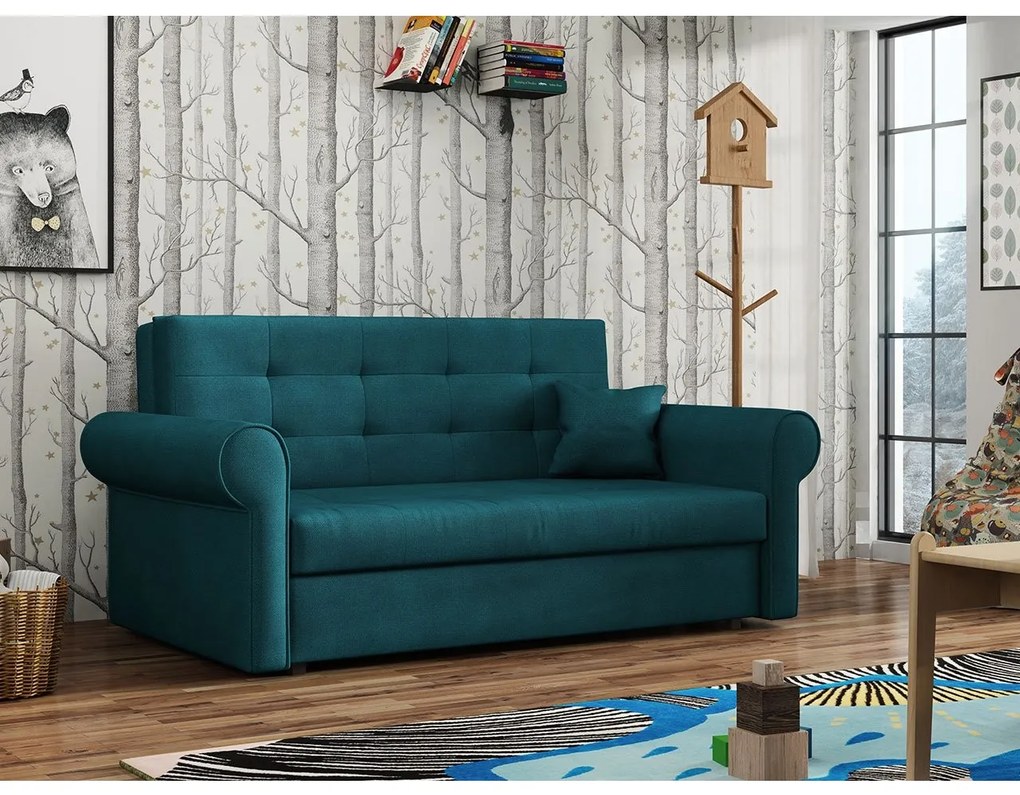 Pohodlná pohovka na sedenie, spanie a popoludňajšie leňošenie - tak možno v skratke opísať model Clivia Silver III. Ďalšou výhodou pohovky je široká ponuka farieb poťahovej látky, medzi ktorými si určite nájdete svoju vysnívanú farbu.Vďaka jednoduchému dizajnu a nekomplikovanému dekorovaniu vyzerá trojmiestna pohovka skvele v obývačke, izbe pre mladých alebo študentskej izbe. Jednoduché rozkladanie a nádoba na lôžkoviny umiestnená vo vnútri sú ďalšími výhodami, ktoré ocenia aj seniori a menšie deti.Rozmery:šírka: 168 cm,hĺbka: 98 cm,výška: 85 cm,plocha na spanie: 196 x 132 cmrozmery úložného priestoru: dĺžka: 129 cm, šírka: 66 cm, výška: 19 cmPrevedenie:rám: borovicové drevo + drevotrieska,sedadlo: T25 / 42 pena + vlnová pružina,operadlo: pena T25 / 42,rozkladacia pohovka,úložný priestor na posteľnú bielizeň,automat na ľahké rozloženie,nohy: kovová čierna,čalúnené operadlo pevne pripevnené,vankúš bez zipsu v cene,voľne stojaca pohovka (čalúnená látkou)Záruka: 24 mesiacov