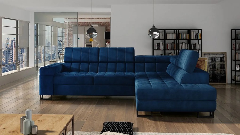 Tmavomodrá rozkladacia rohová pohovka ZENOVA 220x140 cm, obojstranná