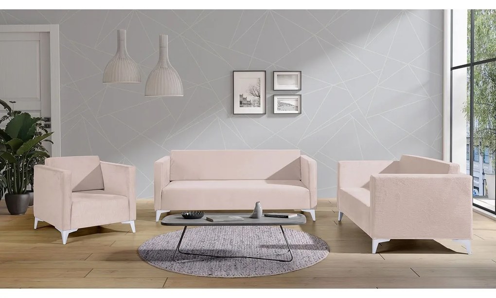 Sedacia súprava Denim 3+2+1, Dostupné poťahy: Solo 251, Farby nožičiek: biely lesk