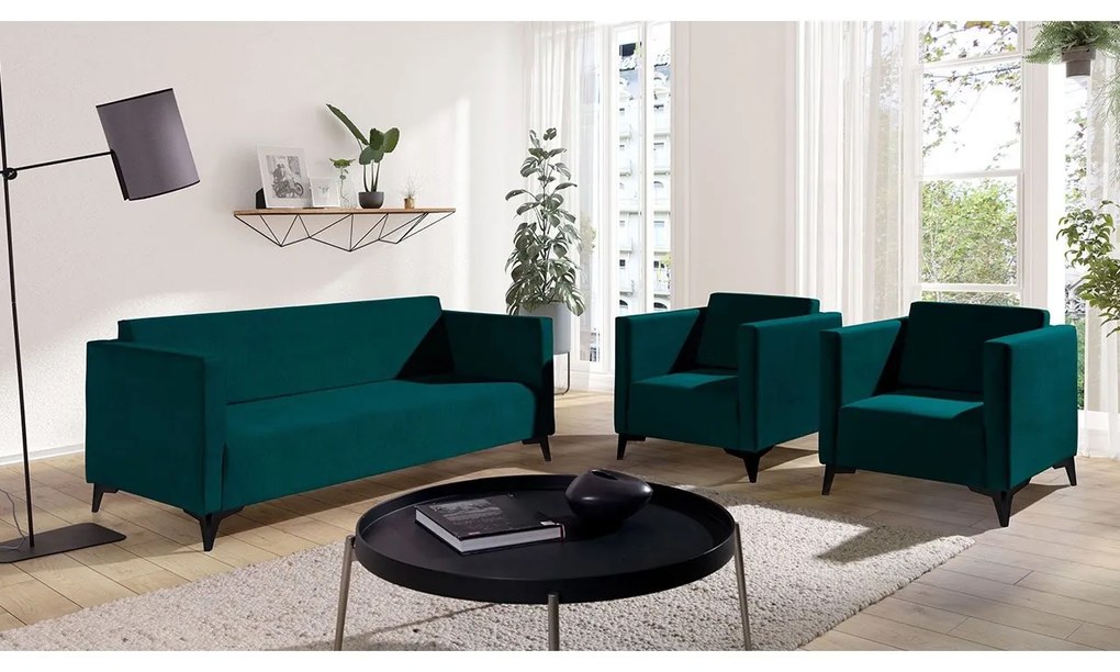 Denim 3 + 1 + 1 je sedacia súprava, ktorá bude perfektná vo vašej obývacej izbe. Vďaka bohatým farbám a schopnosti prispôsobiť farbu nôh si viete sedaciu súpravu zladiť s Vašou obývacou izbou.Sedacia súprava Denim 3 + 1 + 1 má kompaktné rozmery a prvky obsiahnuté v súprave je možné umiestniť do ktorejkoľvek časti vašej obývacej izby - majú čalúnený chrbát a vytvárajú voľne stojaci nábytok.V súprave Denim nájdete dve kreslá a trojmiestnu pohovku bez funkcie na spanie a bez úložného priestoru na posteľnú bielizeň.Zloženie súpravy:Kreslo Denim 1 - 2x,Moderná denimová pohovka 3Rozmery kresla Denim 1:dĺžka: 76 cm,šírka: 82 cm,výška: 74 cmRozmery pohovky Denim 3:dĺžka: 176 cm,šírka: 82 cm,výška: 74 cmprevedenie:rám drevotrieska + drevený rám,sedadlo a operadlo: HR pena,plastové nohy - farby na výber,pohovka nie je rozkladacia,bez funkcie spánku,bez úložného priestoru na posteľnú bielizeň,operadlo vo forme pohyblivého vankúša,voľne stojaca pohovka (čalúnená na zadnej strane látky)Záruka: 24 mesiacov