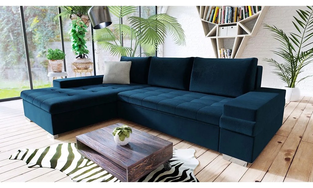 Tmavomodrá rozkladacia rohová pohovka ZENOVA 220x140 cm, obojstranná