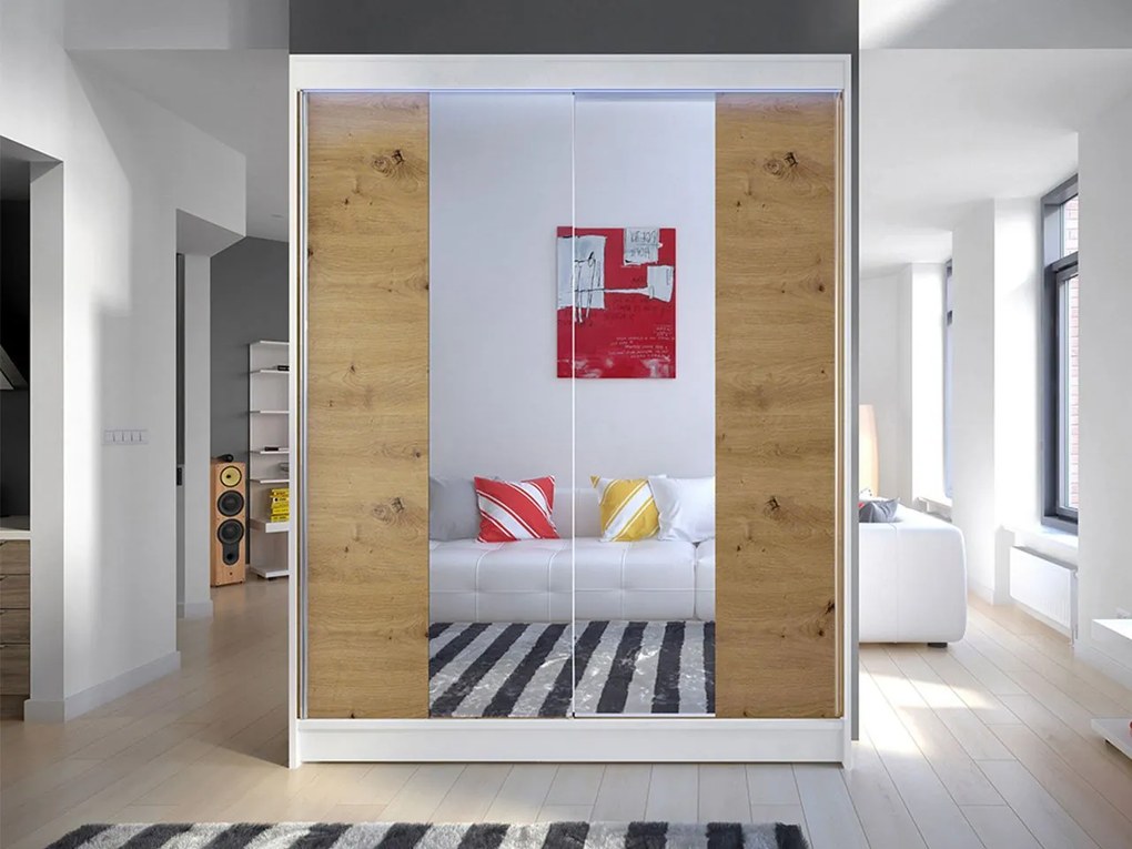 Skriňa s posuvnými dverami Belgia II, Farby: biely / dub artisan, Osvetlenie: bez osvetlenia