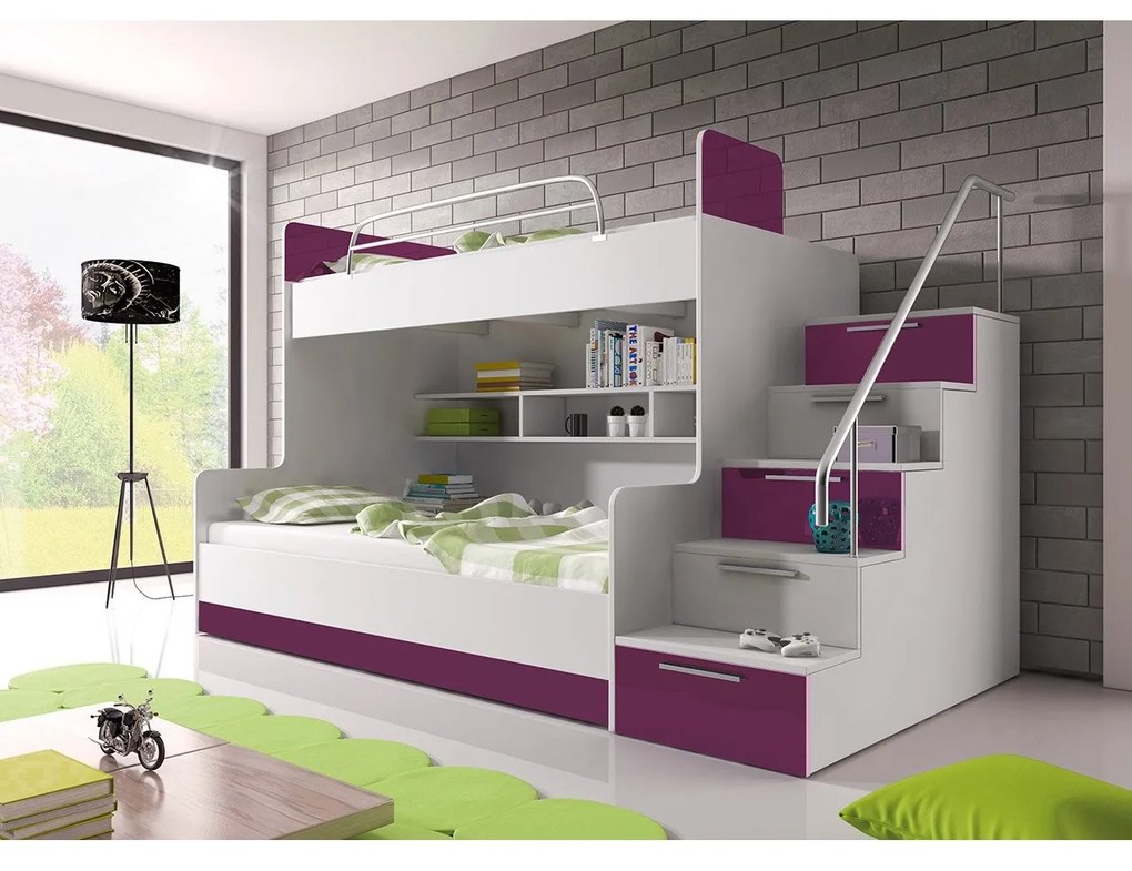 Poschodová posteľ Paradise II poskytuje najlepšie podmienky pre každodenný odpočinok pre dve deti. Tento moderný a multifunkčný nábytok poskytuje okrem štandardnej funkcie na spanie aj dobre usporiadaný priestor na ukladanie ručných predmetov.Rebrík vedúci k hornému lôžku je tu nahradený schodmi s bezpečnostnou bariérou nesúcou dieťa. Ďalšou výhodou sú priestranné úložné priestory skryté v každom z krokov. Vďaka tejto kombinácii je poschodová posteľ so schodmi úspešne nahradená komodu a dokonca aj šatníku. Všetky tieto inovácie potvrdzujú, že Paradise II je ideálny aj v malej súrodeneckej miestnosti.Rozmery:hĺbka: 254 cm,šírka: 120 cm,výška: 166 cm,horná plocha na spanie: 90 x 200 cm,dolná plocha na spanie: 90 x 200 cmPrevedenie:korpus: 16 mm hrubá drevotrieska,fronty: doska MDF s vysokým leskom 16 mm,plastové rukoväte a nohy (šmýkačky),Priame pánty GTV,zákazník sa pri kúpe musí rozhodnúť, či majú byť schody na ľavej / pravej strane postele,dva rošty 90 x 200 - nie sú súčasťou baleniamatrace nie sú zahrnuté v cene posteleZáruka: 24 mesiacov