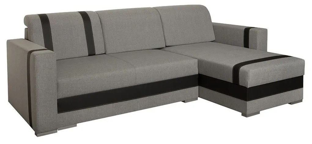 Rozkladacia rohová čalúnená sedacia súprava s úložným priestorom do tvaru L AVESTA pravá sivá