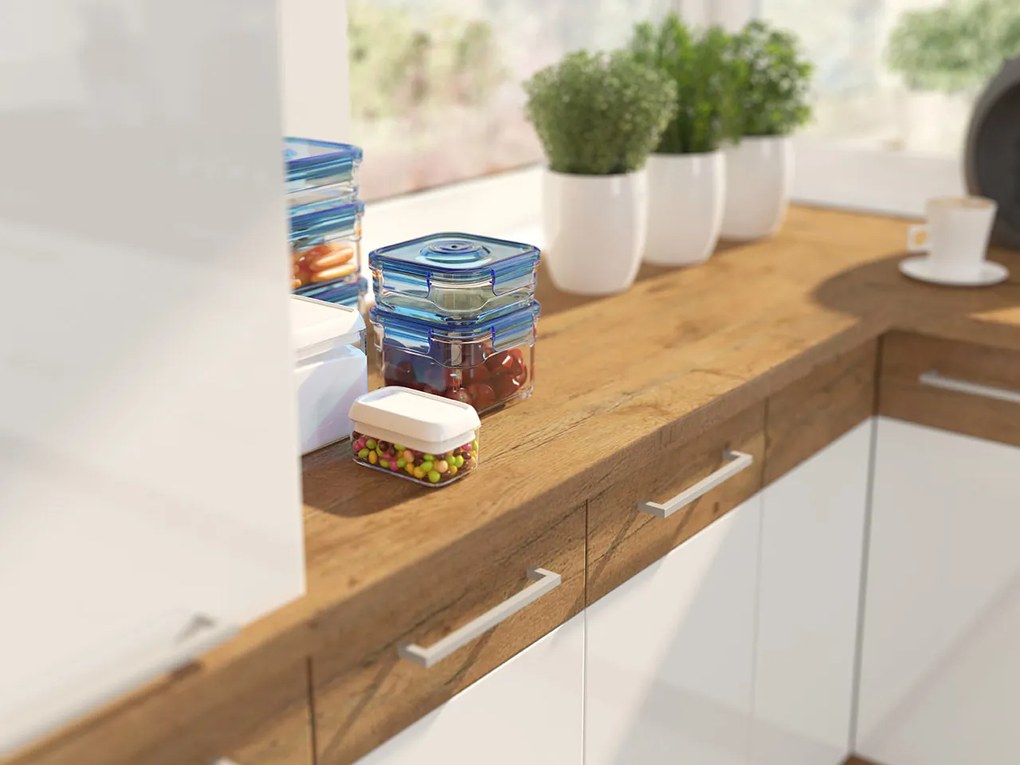 Kuchynská doska je súčasťou kuchynského vybavenia, ktoré je jedným z najpoužívanejších povrchov v domácnosti.Doska Woodline je model, ktorý dokonale ladí s kuchynským nábytkom z rovnakej kolekcie. Kuchynská doska je vyrobená z masívnej drevotrieskovej dosky v dubovej farbe lancelot, ktorá dokonale ladí so súčasnými trendmi v oblasti interiérového dizajnu.Jedná sa o model, ktorý sa veľmi ľahko udržuje v čistote - v prípade znečistenia ho jednoducho utrite čistou, mierne navlhčenou textíliou.Prispôsobte kuchynskú dosku vášmu nábytku - Woodline má rôzne veľkosti a umožňuje rezať hornú časť vľavo alebo vpravo.Rozmery pracovnej dosky:dĺžka: možnosť voľbyvýška: 2,8 cm,hĺbka: 60 cm,Materiál:laminovaná drevotrieska,farba: dub lancelot,všetky hrany sú lemované: zadná hrana je lemovaná bielou farbou, predná a bočné hrany sú vo farbe pracovnej doskymožnosť orezania stola vľavo alebo vpravoZáruka: 24 mesiacov