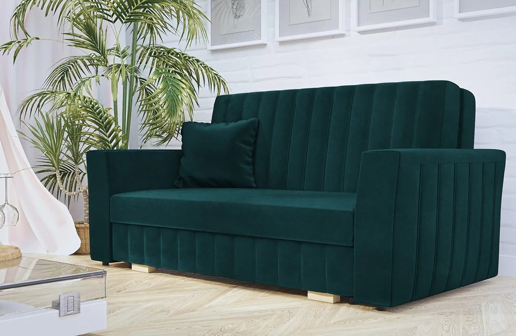 Elegantná pohovka do obývacej izby Clivia Glam III skrášľuje každý interiér. .Ďalšou výhodou pohovky je široká škála poťahových látok, z ktorých si môžete vybrať. Táto škála obsahuje niekoľko najmodernejších odtieňov v súčasnosti.Nábytok je ideálny na lenivý odpočinok v sede, v sklopnej polohe, ako aj počas popoludňajšieho spánku. Pohovka s funkciou na spanie má tiež úložný priestor na posteľnú bielizeň, ktorá podporuje udržanie poriadku v obývacej časti. Rozkladanie a skladanie nábytku je podporované automatom na rozkladanie.Rozmery:šírka: 160 cm,hĺbka: 98 cm,výška: 85 cm,plocha na spanie: 196 x 132 cmPrevedenie:rám: borovicové drevo + drevotrieska,sedadlo: pena T25 / 42 + vlnová pružina,operadlo: pena T25 / 42,rozkladacia pohovkamá funkciu spánkuúložný priestor na posteľnú bielizeň,automat na ľahké rozloženie,nohy: drevené + plastové,čalúnené operadlo pevne pripevnené,vankúš bez zipsu v cene,voľne stojaca pohovka (čalúnená látkou)Rozmery úložného priestoru:- dĺžka: 129 cm,- šírka: 66 cm,- výška: 19 cmZáruka: 24 mesiacov