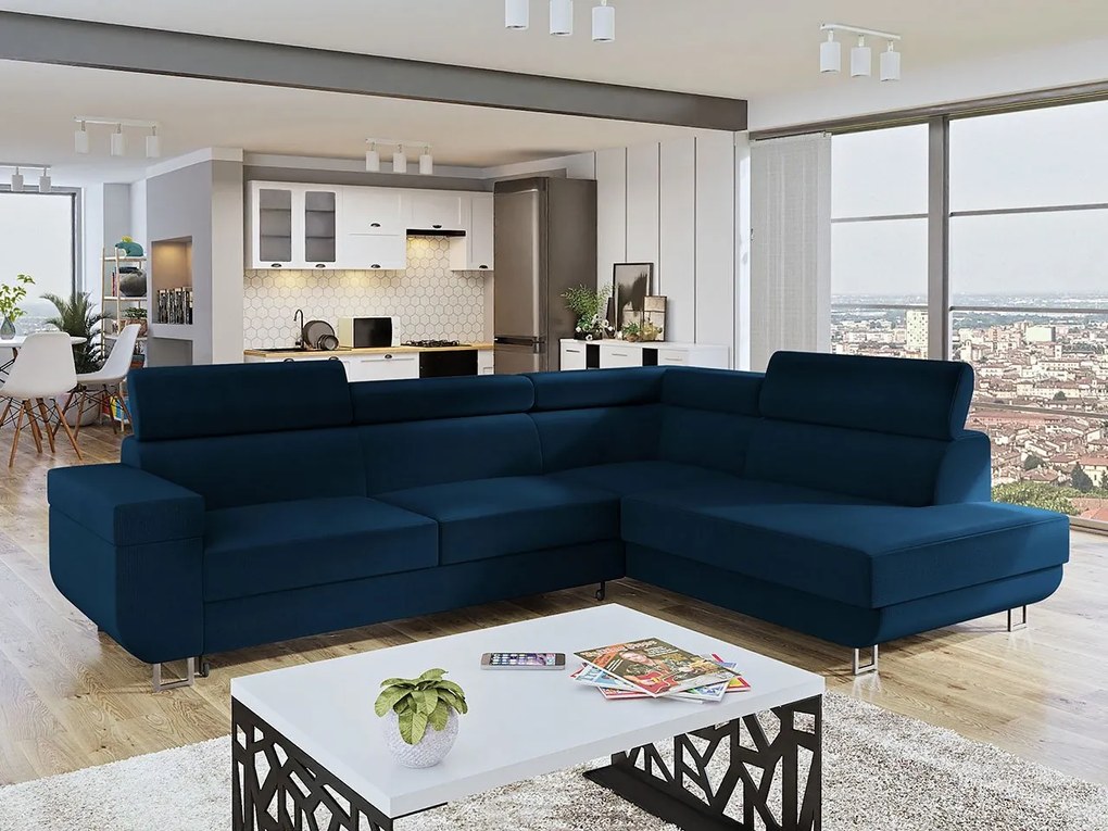 Tmavomodrá rozkladacia rohová pohovka ZENOVA 220x140 cm, obojstranná