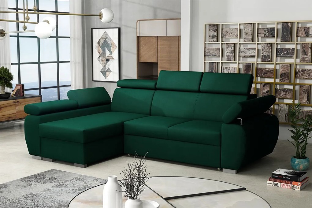 Tmavozelená rozkladacia rohová pohovka ZENA, obojstranná