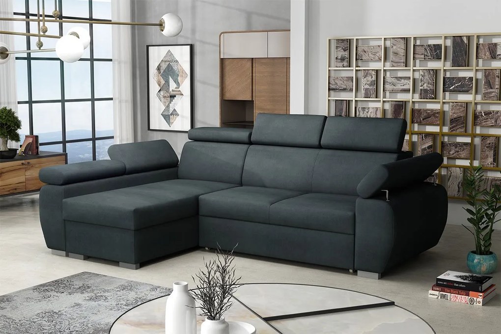 Vaše pohodlie pri relaxácii v obývačke je našou prioritou. Preto sme pre Vás pripravili rohovú sedačku Giza Mini s úložným priestorom, ktorej súčasťou sú nastaviteľné opierky hlavy pre vyšší komfort. Nastavenia každej z nich je možné prispôsobiť zvlášť, čím sa výrazne zvýši štandard sedenia alebo relaxácie.Pomocou rozkladacieho systému automat, ktorý uľahčuje rozloženie, pripravíte za okamih miesto na spanie s rozmermi optimálnymi pre dve osoby.Rozmery:šírka: 255 cmhĺbka: 170 cmvýška: 85 - 98 cmplocha na spanie: 200 x 130 cmRohová strana: ľavá alebo praváPrevedenie:rám: 6 cm hrubé borovicové drevo + 16 mm hrubá nábytková doska + 16 mm hrubá MDF doskaoperadlo: T30/38 penasedadlo: T30/38 pena + vlnová pružina typu Bopierky hlavy: T23/15 penarozkladacia,automat na ľahké rozloženie,má funkciu spánkuúložný priestor,kovové chrómové nohy (už predvŕtané do nábytku)všetky opierky hlavy sú nastaviteľné,čalúnené operadlo pevne pripevnené,celočalúnená sedačka vhodná aj do priestoruRozmery úložného priestoru:dĺžka: 165 cmšírka: 62 cmvýška: 23 cmZáruka: 24 mesiacov